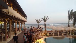 Beach club ini memiliki banyak fasilitas, membuat pengunjung dapat menikmati hidangan, berpesta, atau bersantai.